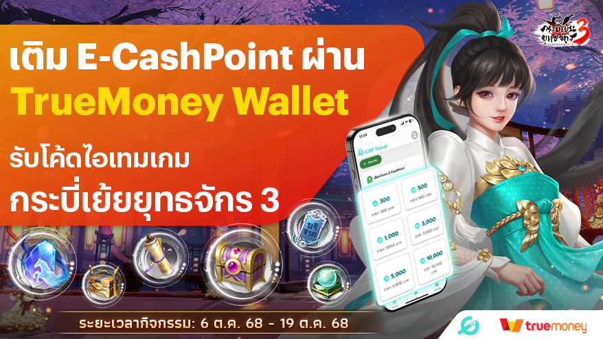 📣 เติม E-CashPoint ผ่าน TrueMoney Wallet รับไอเทมโค้ดเกม 6 ต.ค. 2568 – 19 ต.ค. 2568 !