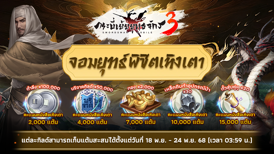 ⚔️จอมยุทธ์พิชิตเหิงเตา 18 พ.ย. – 24 พ.ย. 68 ⚔️
