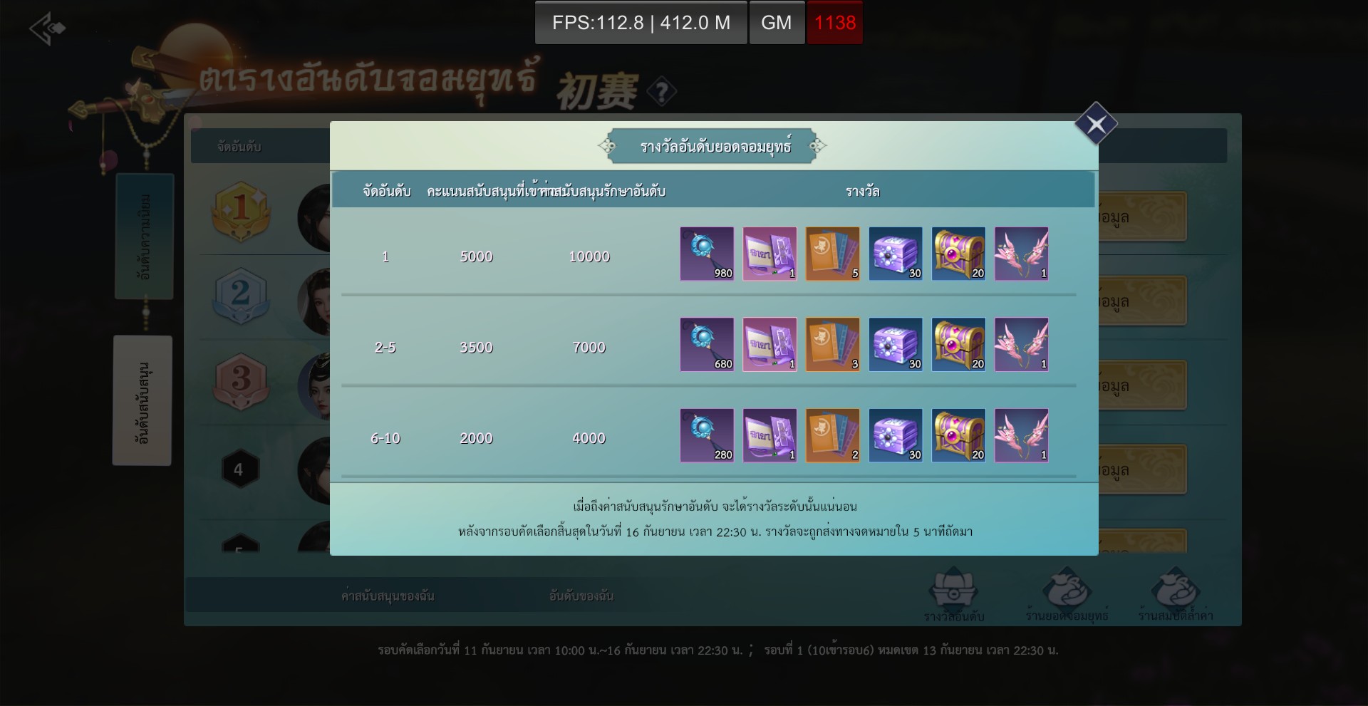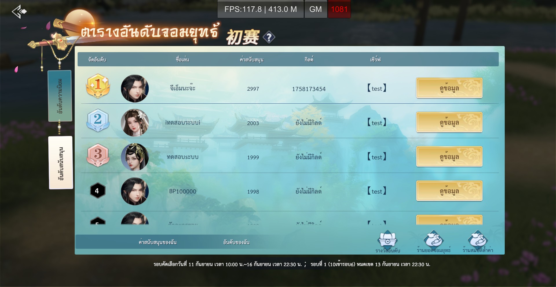คะแนนความนิยมของจอมยุทธ์จะถูกรีเซ็ตใหม่ในแต่ละรอบ โดยรอบสุดท้ายจะคำนวณแบบข้ามเซิร์ฟเวอร์!