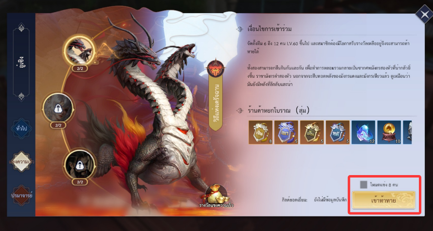 รวมพลัง 8 จอมยุทธ์ สู้บอสมังกร 2 หัว ทีมใดทำเวลาติดอันดับท็อป 3 ก็รับรางวัลเพิ่มเติมไปได้เลย!