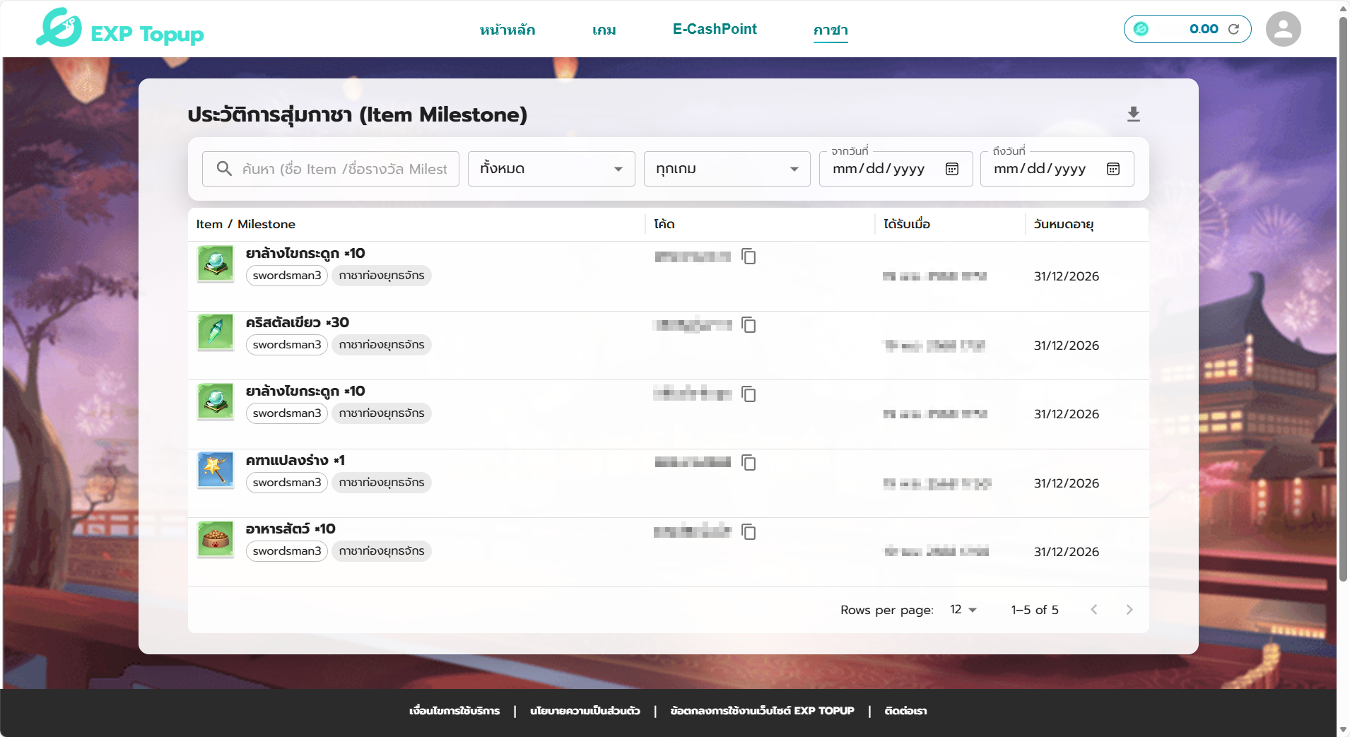 📌รางวัล Item ที่ได้รับ จะได้เป็น Code ซึ่งผู้เล่นสามารถนำโค้ด ไปกรอกแลกของภายในเกมได้