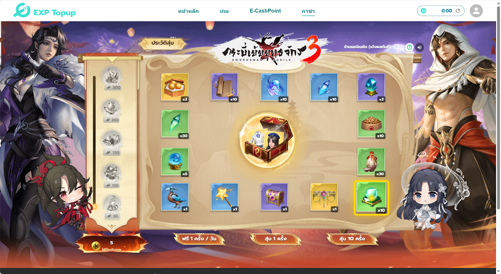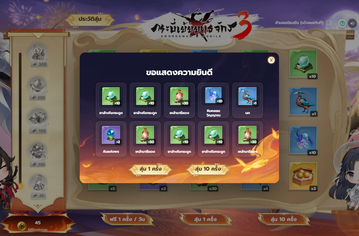 📌รางวัล Item Code สามารถดูได้ที่ “ประวัติกาชาท่องยุทธจักร” หรือปุ่ม “ประวัติสุ่ม”