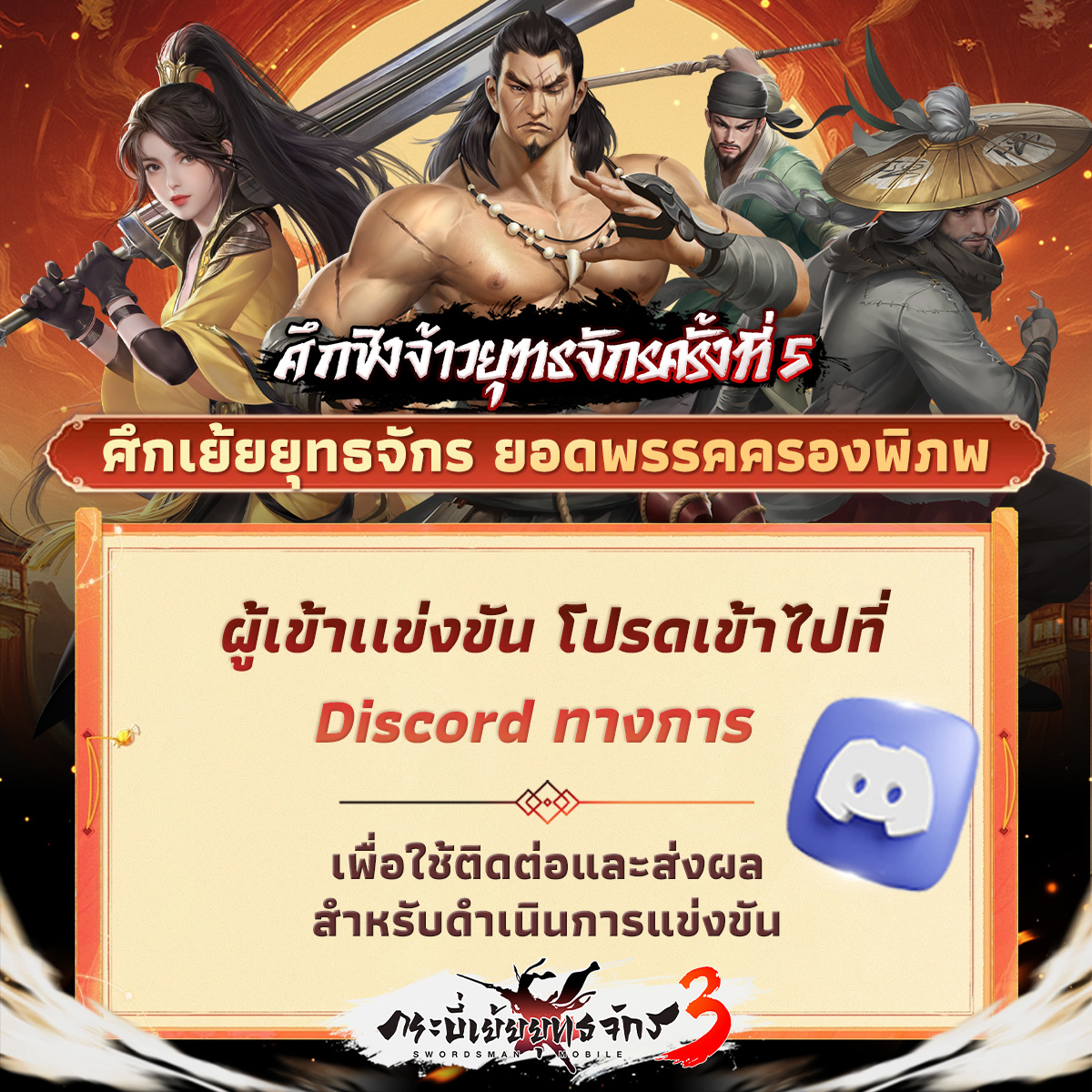 ✍️สำหรับสายการแข่งขัน ทางทีมงานจะทำการสุ่มจับฉลากในวันพรุ่งนี้ (15 ธ.ค. 2568) และท่านสามารถมาตรวจสอบได้ทาง Discord ทางการของเกม ในกลุ่มห้อง [⚔️ศึกชิงจ้าวยุทธจักรครั้งที่ 5⚔️ 4v4 ศึกเย้ยยุทธจักร ยอดพรรคครองพิภพ] หรือติดตามได้ทางหน้าเว็บไซต์ หรือแฟนเพจ Facebook รวมถึงลิงก์ที่ใช้ประกอบการดูโปรแกรมแข่งขัน ตารางคะแนน และอื่นๆ ที่ใช้ในการดำเนินการแข่งขันอีกด้วย