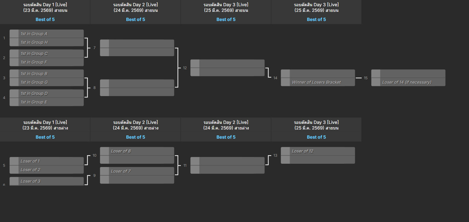 📅กำหนดการศึกชิงจ้าวยุทธจักรครั้งที่ 8 รอบตัดสิน 8 ทีมสุดท้าย (แพ้ตกรอบได้ 1 ครั้ง Double Elimination)