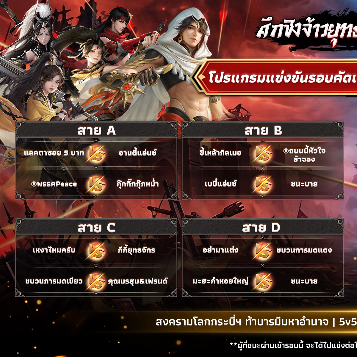 🧐ย้ำอีกทีว่ารอบนี้ทีมไหนพ่ายแพ้จะตกรอบทันที!! แล้วก็ต้องนัดแข่งกันเองตามเวลา 18:00 น. – 20:30 น. (หรือแล้วแต่จะตกลงกัน) หากสามารถฝ่าฟันผ่านไปได้ จนเหลือ 8 ทีมสุดท้าย ก็จะเข้าสู่รอบตัดสิน ที่จะแข่ง 23 – 25 มี.ค. 69 รูปแบบ Double Elimination (แพ้ตกรอบได้ 1 ครั้ง) มี Live สด แสดงฝีมือให้ผู้คนประจักษ์ ฉะนั้นบอกเลยว่า เดือด!!🔥