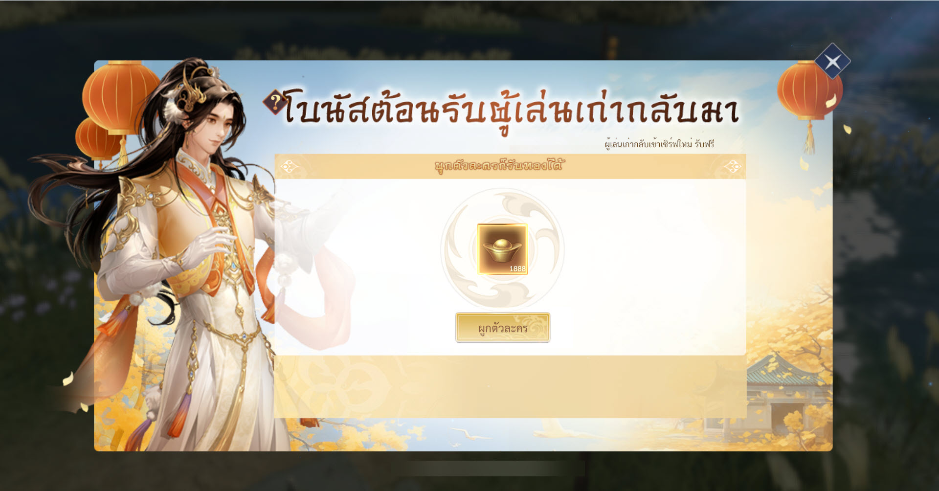 กดปุ่ม “ผูกตัวละคร” โดย **1 ID จะรับได้เพียง 1 ครั้งเท่านั้น**
