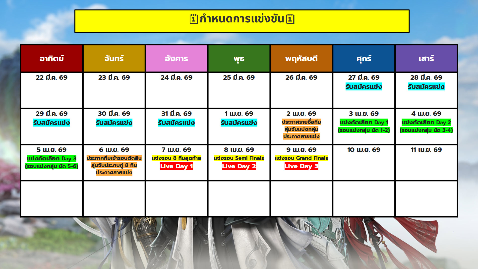 ⏲2 เมษายน 2569 ตรวจและประกาศชื่อกิลด์ ชื่อผู้เล่น ที่ส่งสมัครแข่งขัน