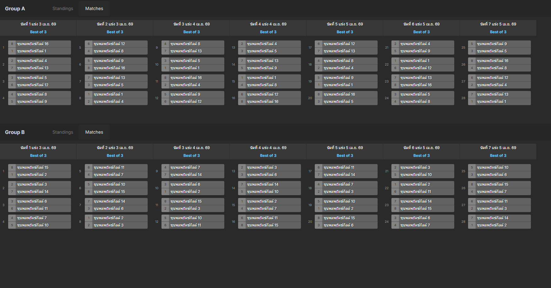 📌รอบคัดเลือกแข่งแบบ Round Robin (แบ่งกลุ่มแข่งพบกันทุกทีมในกลุ่ม เก็บคะแนน)