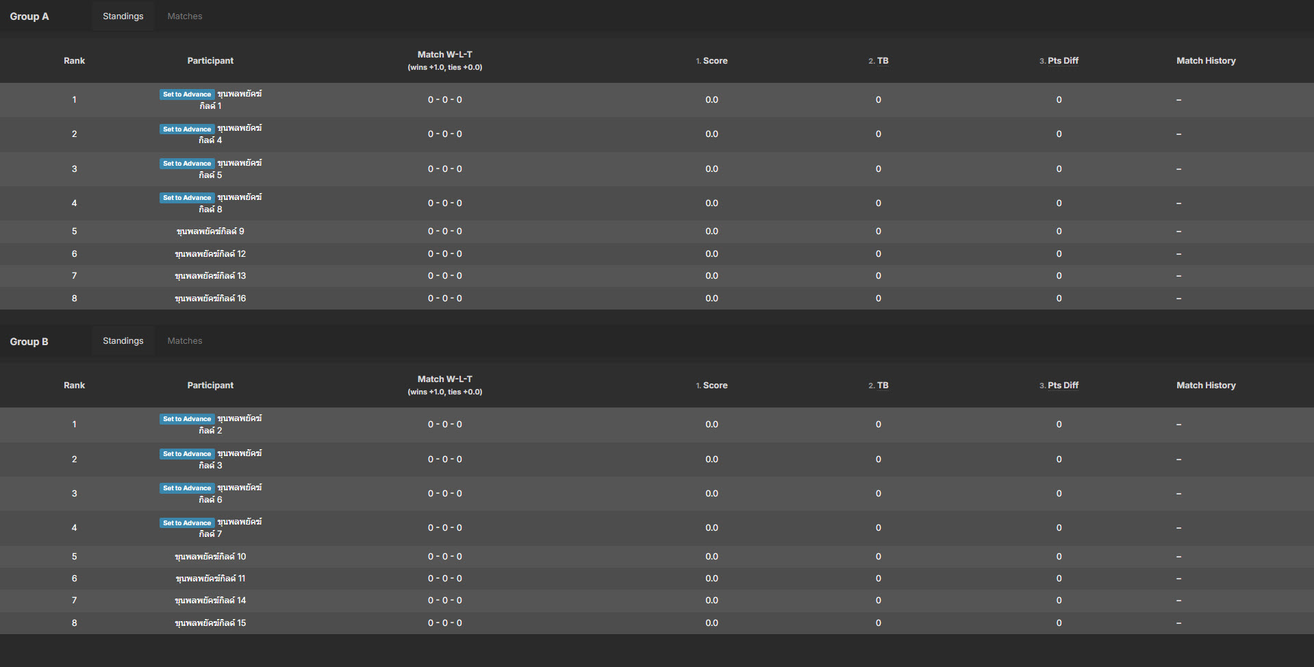 ภาพตัวอย่างการแข่งขัน รอบคัดเลือกแข่งแบบ Round Robin แบ่งกลุ่มเก็บคะแนน