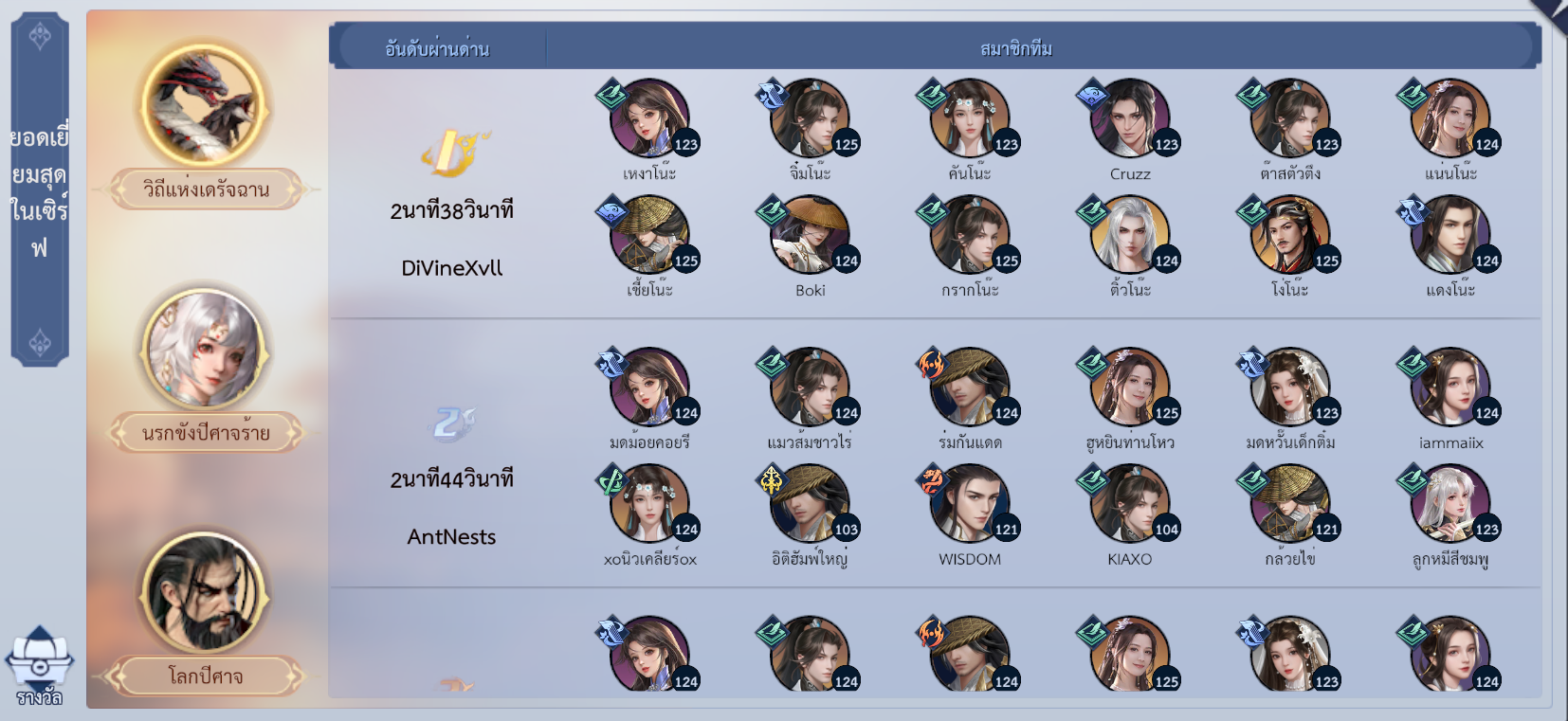 - กิลด์ที่ทำเวลาได้เร็วที่สุดเป็น อันดับ 1 – 3 ของแต่ละเซิร์ฟเวอร์ ผู้เล่นทั้งหมดของกิลด์นั้นจะได้รับรางวัลตามอันดับที่ทำได้