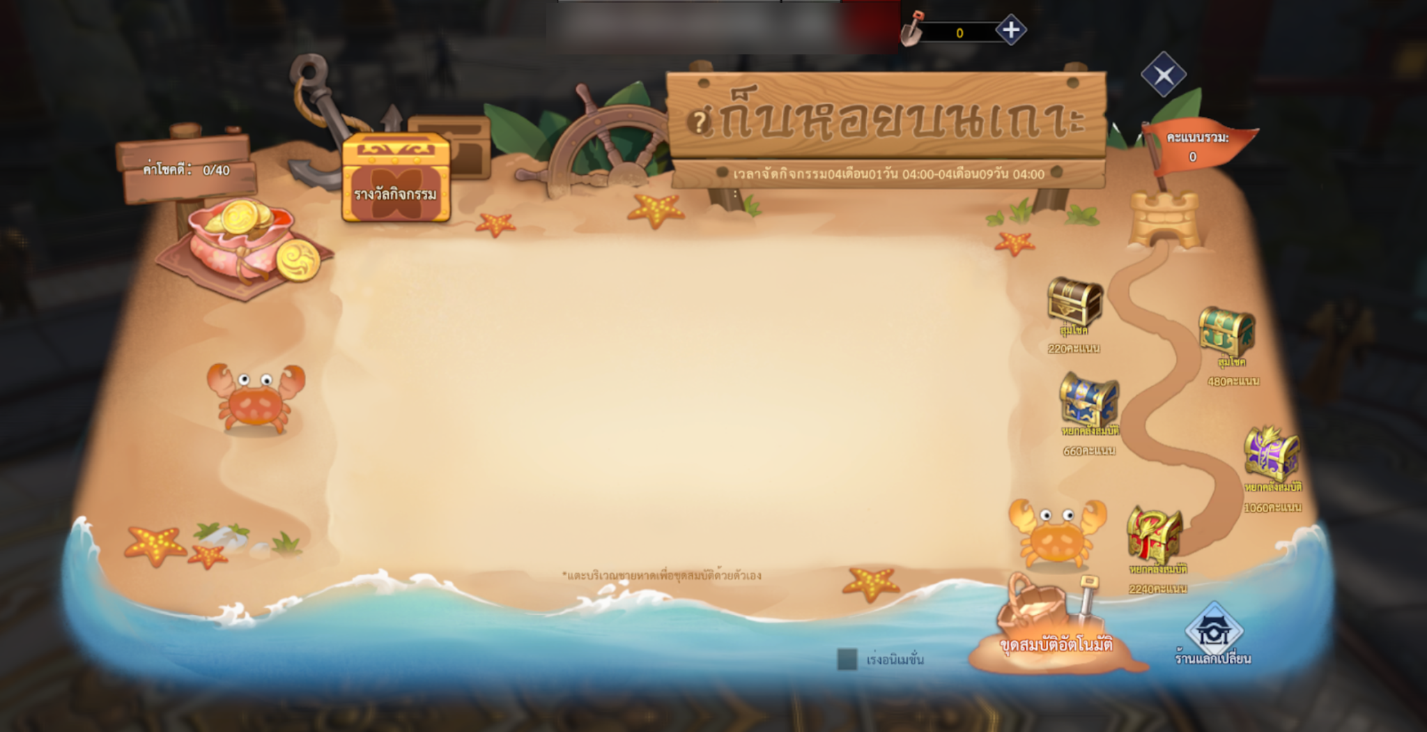 เมื่อคะแนนถึง 220 | 480 | 660 | 1,060 และ 2,240 จะสามารถรับรางวัลเพิ่มเติมได้