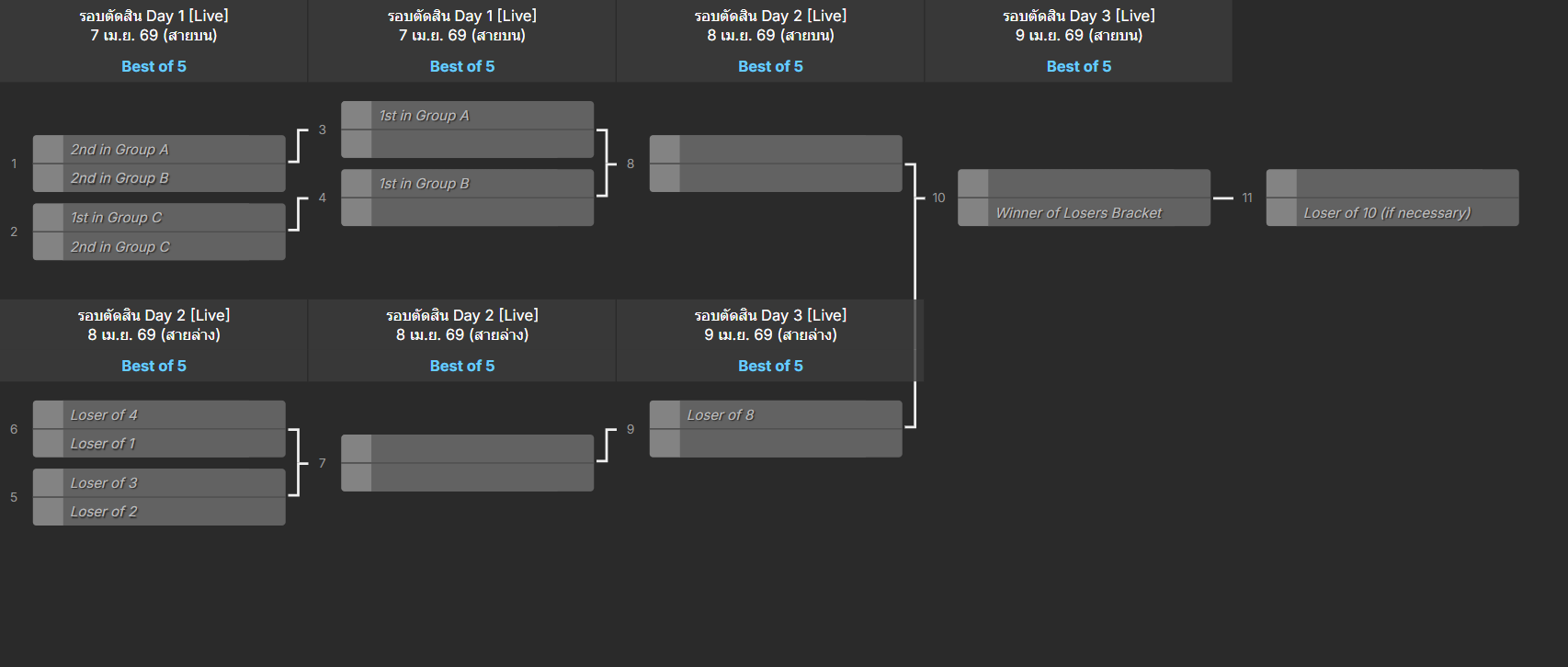 📅กำหนดการศึกชิงจ้าวยุทธจักรครั้งที่ 9 รอบตัดสิน 6 ทีมสุดท้าย (แพ้ตกรอบได้ 1 ครั้ง Double Elimination)