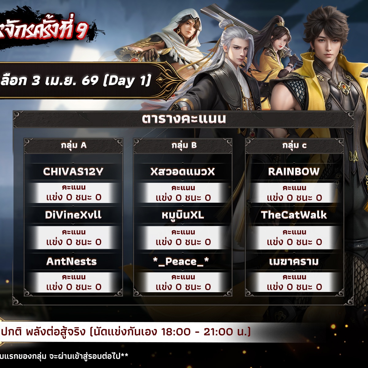 ðĒāļĻāļķāļāļāļīāļāļāđāļēāļ§āļĒāļļāļāļāļ āļāļāļĢāļąāđāļāļāļĩāđ 9 āđāļāļāļ·āđāļ 8v8 āļĄāļŦāļāļĢāļĢāļĄ Guild War 8 āļāļļāļāļāļĨāļāļĢāļ°āļāļąāļāļāļēāļ (āļāļĨāļąāļāļāđāļāļŠāļđāđāļāļĢāļīāļ) āļ§āļąāļāļāļĩāđ 3 āđāļĄ.āļĒ. 69 (āļ§āļąāļāļāļĩāđ) āļāļ°āđāļĢāļīāđāļĄāļāđāļāđāļāđāļāļāļąāļāđāļāļĢāļāļāļāļąāļāđāļĨāļ·āļāļ Day 1 āđāļāļāđāļāđāļāļāļ°āđāļāļāđāļāđāļāļāļĨāļļāđāļĄ A B C āđāļāļĒāđāļāđāļ BO3 āļāļēāļāļ§āļīāļĄāļēāļāļŦāļĒāļāđāļĨāļ°āļāļģāļŦāļāļąāļāļĻāļąāļāļāļīāđāļŠāļīāļāļāļīāđ āļŦāđāļēāļĄāđāļāđāļŠāļģāļāļąāļāļāđāļģāļāļąāļāļ āļēāļĒāđāļāļāļĩāļĄ āļĢāļ§āļĄāļāļĩāļĄ 8 āļāļ āļĢāļāļāļāļĩāđāđāļāļĢāļĄāļĩāļāļāļāļāļ°āđāļĢāļāđāļŠāļ§āļĄāđāļŠāđāļāļąāļāđāļāļĢāļāļĄāļēāđāļŦāđāđāļāđāļĄāļĢāļ°āļāļ āļ§āļąāļāļāļąāļāđāļāđāļĨāļĒāļ§āđāļēāđāļāļĢāđāļāļĢāđāļāļāļ§āđāļēāđāļāļĢ āļāļāļāđāļāļĩāļĒāļĢāđāđāļĨāļ°āļāļąāļāđāļāđāļāļāļīāļāļāļēāļĄāļāļēāļĢāļēāļāļāļąāļāđāļāđāļāļĩāđāļāļĩāđ!!âŽ