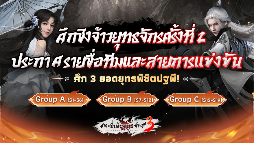 ประกาศรายชื่อทีมผู้เข้าแข่งขัน และสายการแข่งขัน ศึกชิงจ้าวยุทธจักรครั้งที่ 2 ศึก 3 ยอดยุทธพิชิตปฐพี!