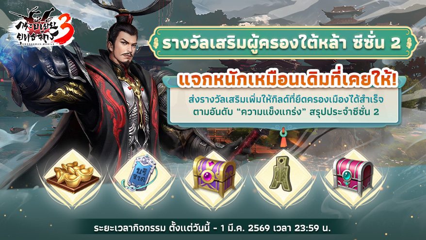 ⚔️รางวัลเสริมผู้ครองใต้หล้า ซีซั่น 2 (วันนี้ – 1 มี.ค. 2569)🏯