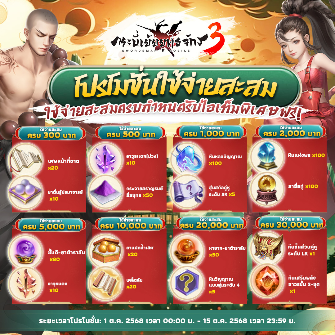- ไม่ว่าจะใช้จ่ายถึงยอดสะสมเท่าไร ก็จะได้ของรางวัลยอดเติมสะสมก่อนหน้าทั้งหมด