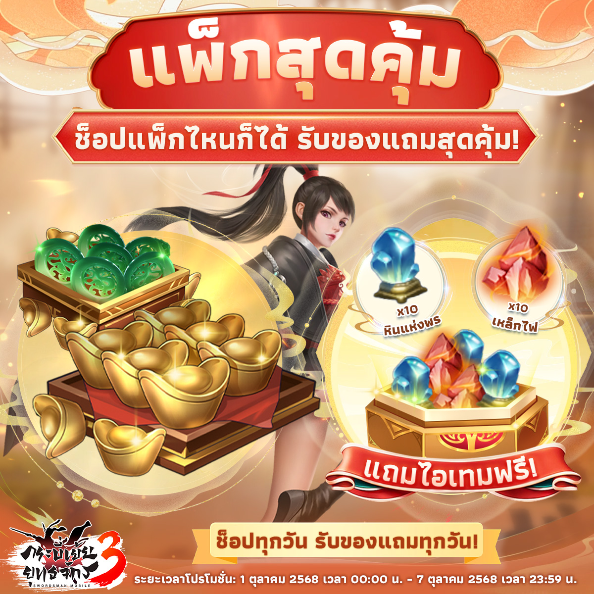 ซื้อแพ็กไหนก็ได้ ที่หน้าเว็บไซต์ EXP Topup รับฟรี หินแห่งพร 10 ชิ้น เหล็กไฟ 10 ชิ้น รับสิทธิ์วันละ 1 ครั้งต่อไอดี