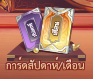 คลิกที่ไอคอน สวัสดิการ ด้านบนบริเวณหน้าจอหลักของเกม แล้วกดที่รูป การ์ดสัปดาห์/เดือน