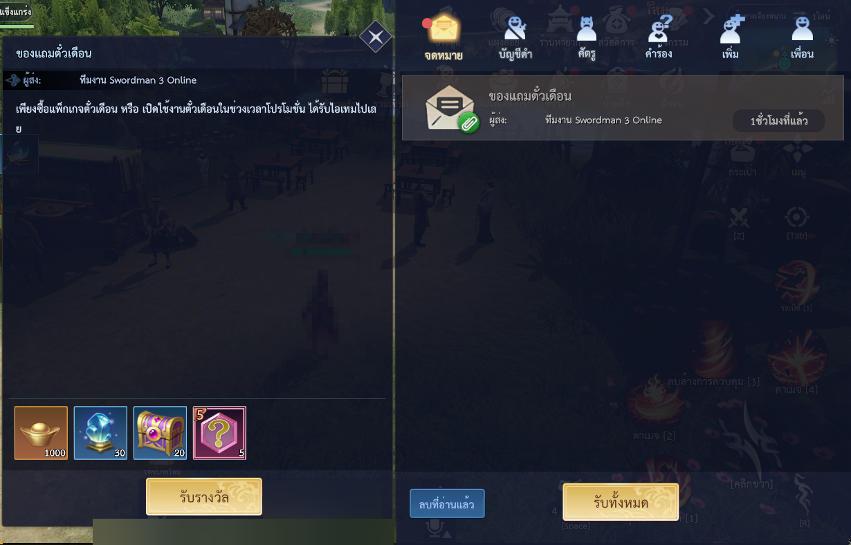 • จากนั้นไปรับไอเทมได้ที่กล่องจดหมาย