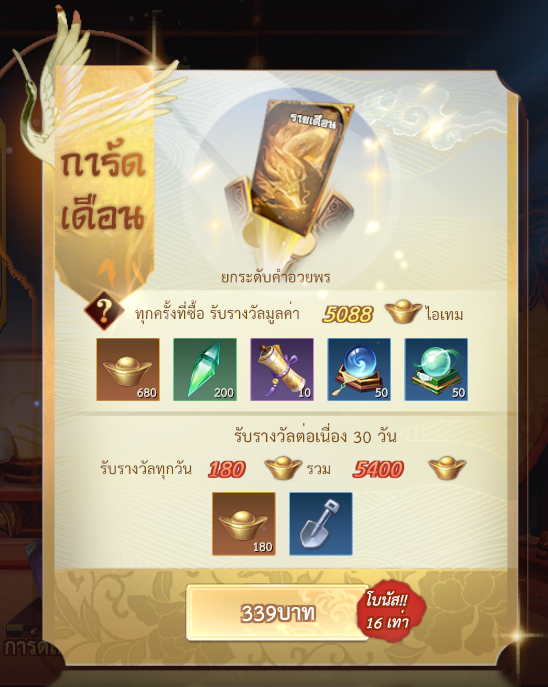 🛒สิทธิพิเศษโดนใจมอบให้กับท่านจอมยุทธ์อีกแล้ว!! งานนี้ใครเป็นสมาชิก “การ์ดเดือน” อยู่แล้ว ในช่วงเวลา 1 – 31 ธ.ค. 68 (23:59 น.) จะได้รับไอเทมเสริมคุ้มๆ สะเทือนยุทธจักร เพิ่มเข้าไปอีกทันที!! ส่วนใครยังไม่เป็นสมาชิก หากทำการต่ออายุช่วงเวลาดังกล่าว ก็จะได้ทันทีเช่นกัน ฉะนั้นห้ามพลาด!!✨