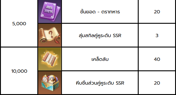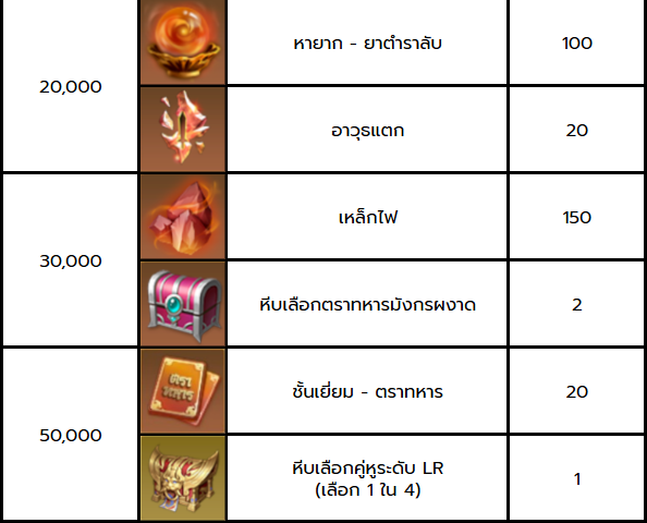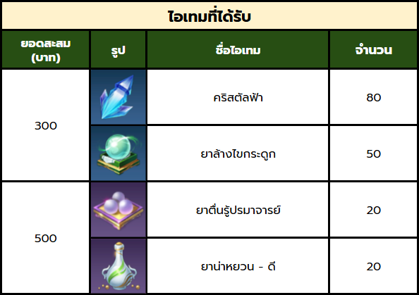 ระดับ 500 บาท และระดับ 300 บาท - ไอเทมจะถูกส่งให้ทางกล่องจดหมายในเกม