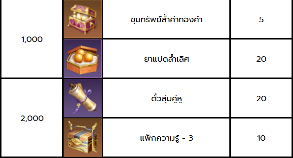 สะสมผ่านทางหน้าเว็บ EXP Topup ภายในช่วงระยะเวลาโปรโมชันที่กำหนดเท่านั้น - นับยอดใช้จ่ายสะสมแยกกันแต่ละตัวละคร (UID) แม้จะ ID เดียวกัน