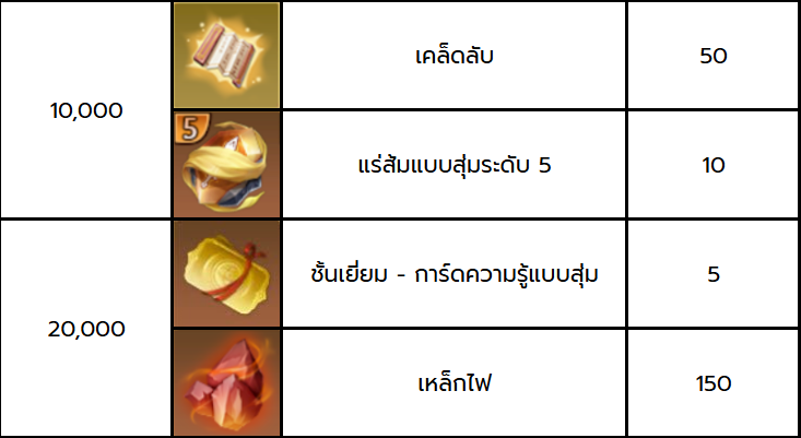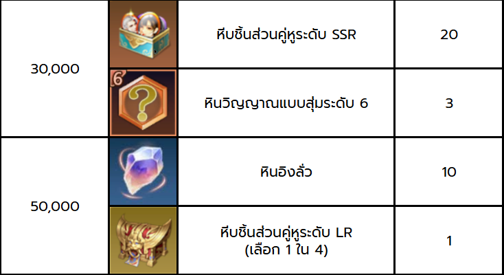 ก็จะได้ของรางวัลยอดสะสมระดับก่อนหน้าทั้งหมดด้วย