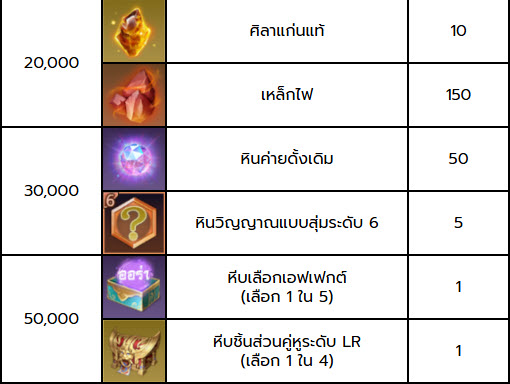 ก็จะได้ของรางวัลยอดสะสมระดับก่อนหน้าทั้งหมดด้วย