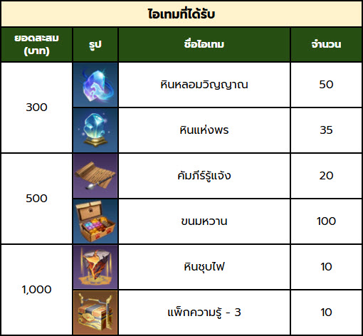 • ไม่ว่าจะใช้จ่ายซื้อแพ็กเกจเติมทองหรือหยก ไปถึงยอดสะสมระดับเท่าไร