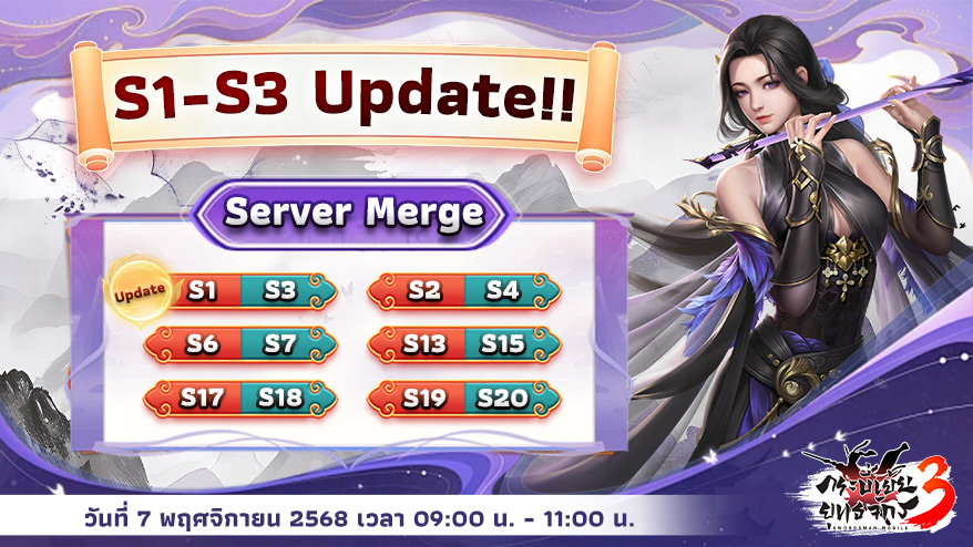 ขอให้เหล่าจอมยุทธ์ทุกท่านเตรียมตัว และวางแผนให้พร้อมสำหรับการรวมเซิร์ฟเวอร์ที่จะเกิดขึ้นนี้ ทีมงานจะคอยอัปเดต และแจ้งข้อมูลเพิ่มเติมให้ทราบอย่างต่อเนื่อง