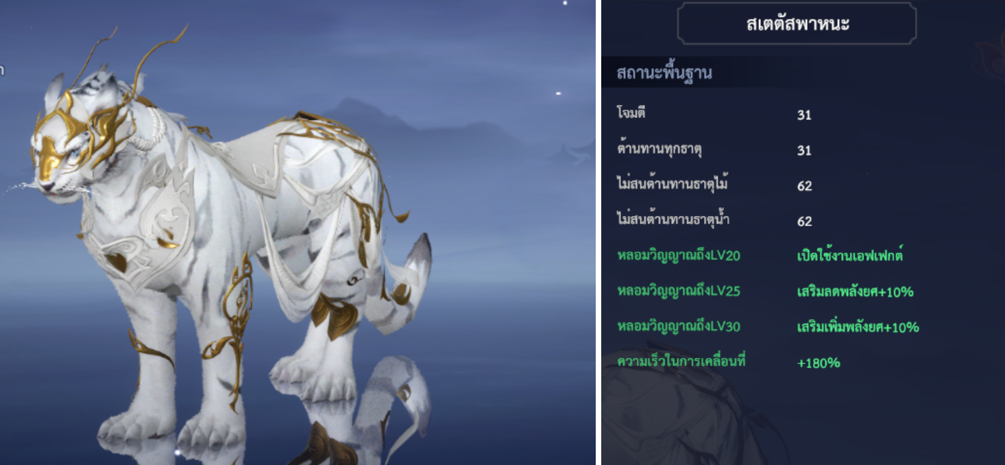 เมื่อใช้งาน จะเพิ่มพลัง, กาย, ว่องไว, ชำนาญ และสกิลหลบหลีก อย่างละ +2 (ถาวร)