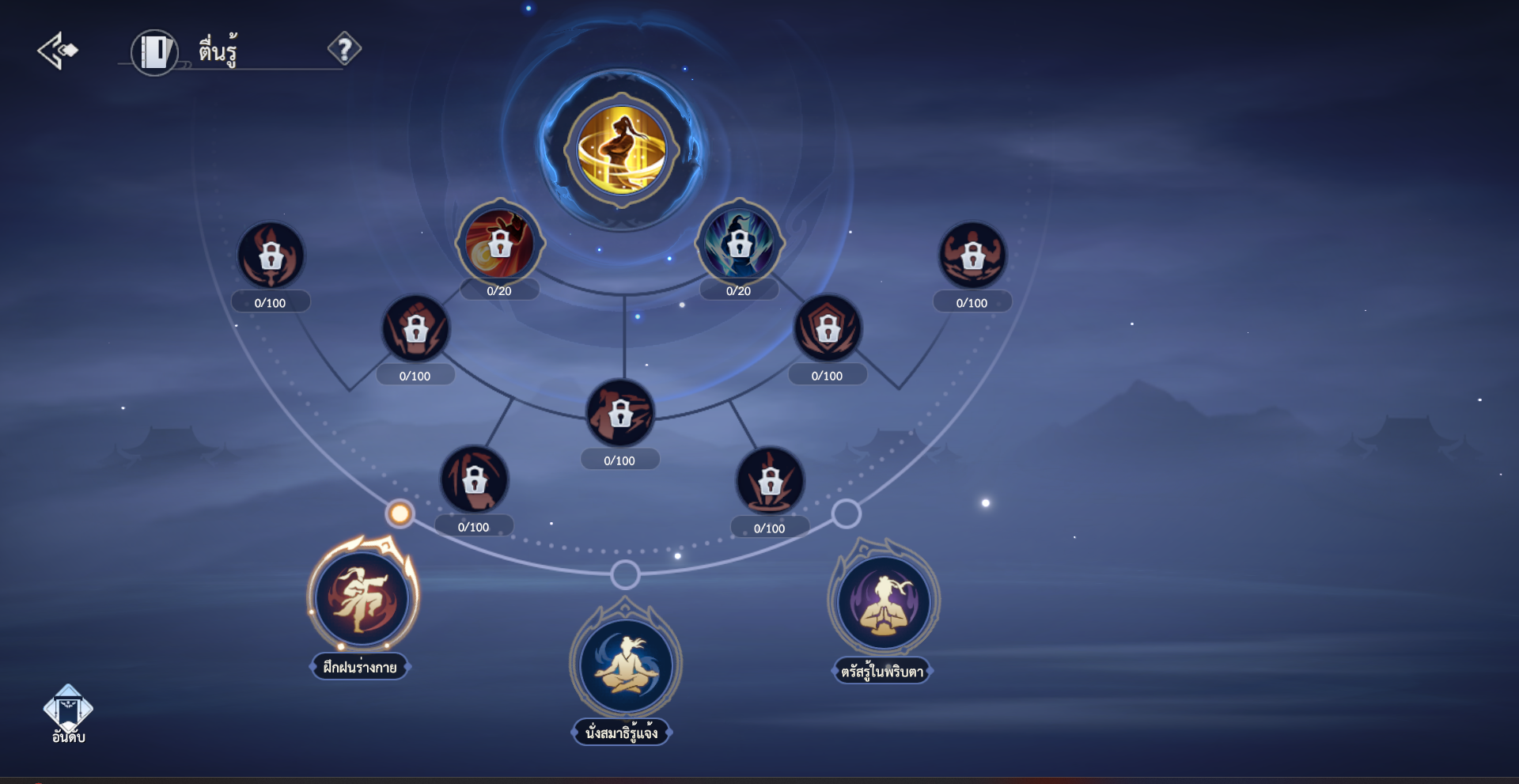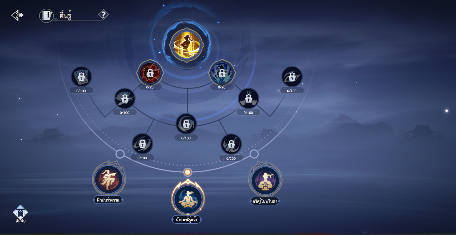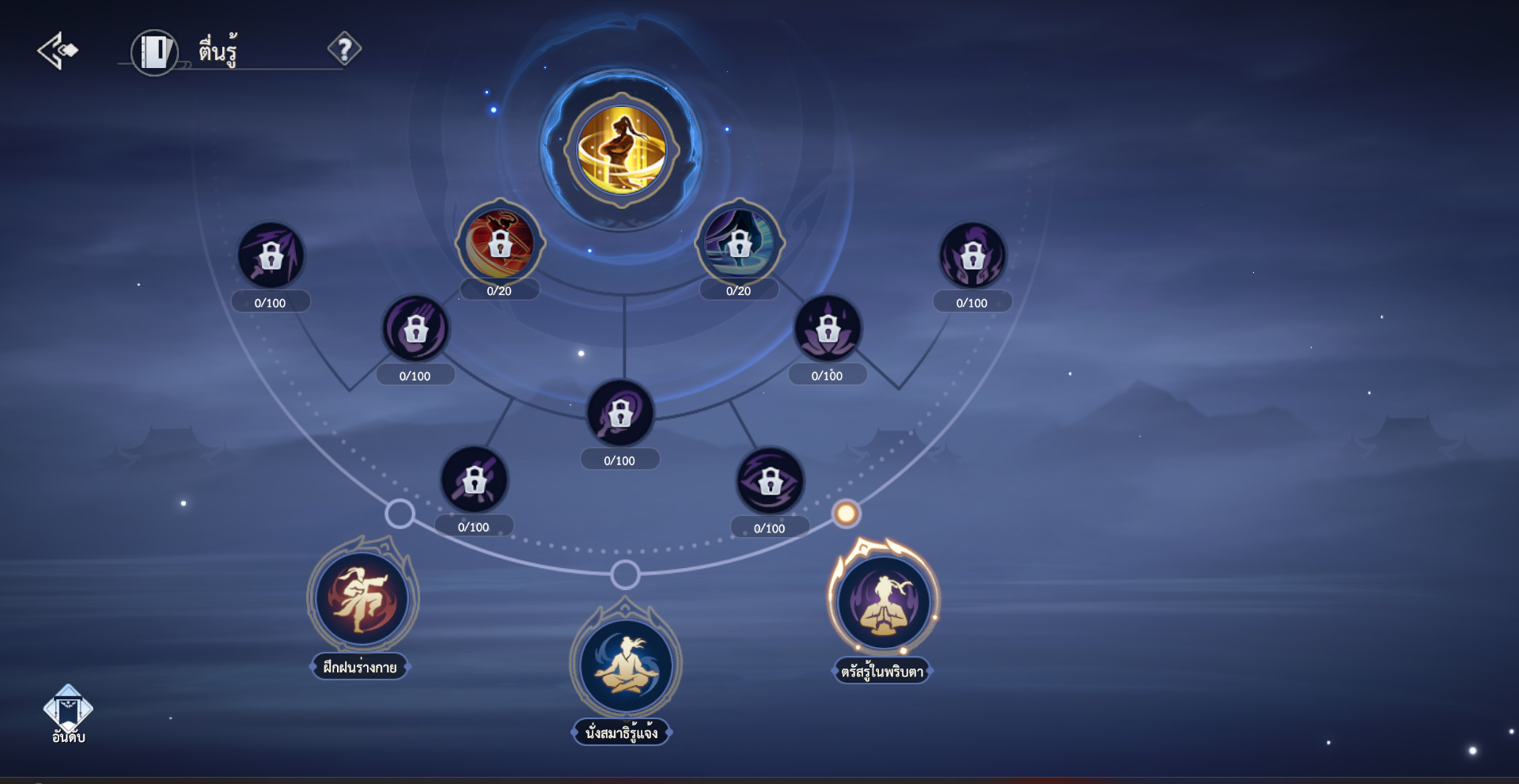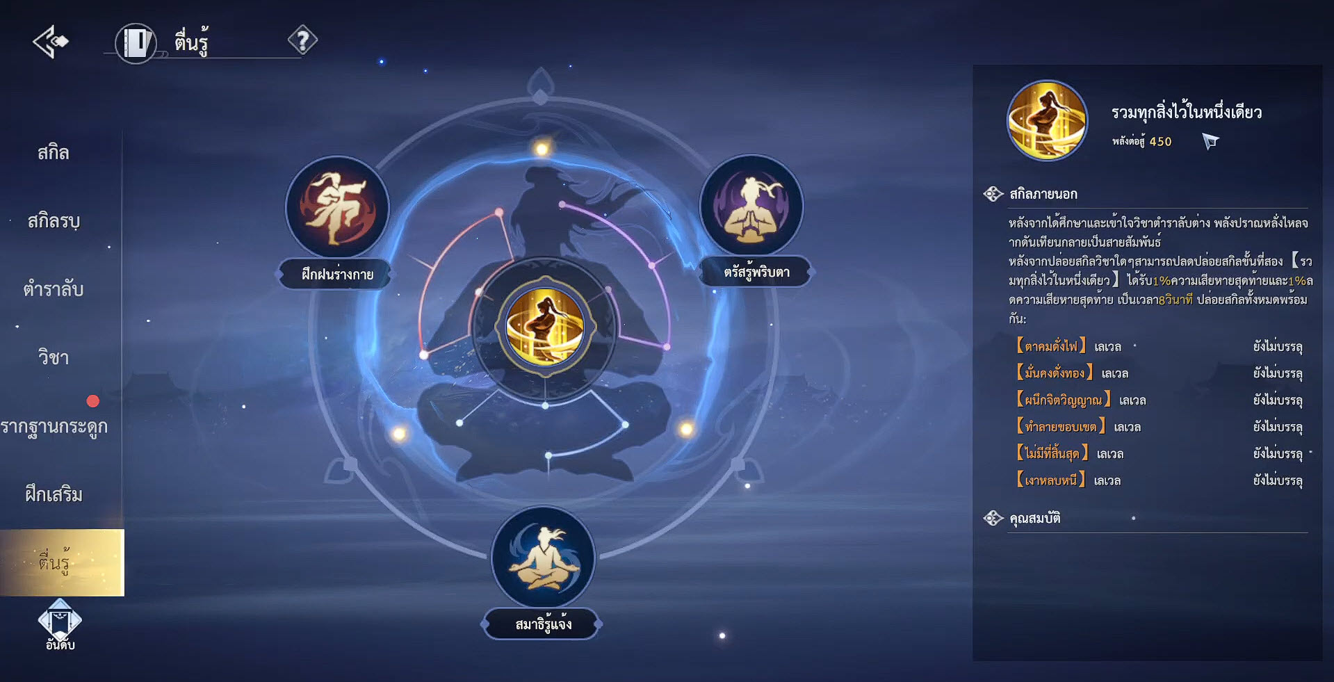 🧘♀️ระบบ “ตื่นรู้” คือการปลดล็อกสกิลต่างๆ ที่มีให้เรียนรู้อยู่ทั้ง 3 สาย ซึ่งมีดังนี้ “ฝึกฝนร่างกาย”, “ตรัสรู้ในพริบตา” และ “นั่งสมาธิรู้แจ้ง” ไปจนสุดถึง 2 สกิลสุดท้าย จนครบทั้ง 3 สาย ก็จะสามารถใช้สกิลที่เรียกว่า “รวมทุกสิ่งไว้ในหนึ่งเดียว” ซึ่งจะนำสกิลตื่นรู้ทั้งหมด (6 สกิล) มาปล่อยท่าเหล่านี้ได้พร้อมกันทีเดียว ทำให้ตัวละครของเราได้รับเอฟเฟกต์ต่างๆ ครบครันเพียงแค่กดปุ่มเดียว✡