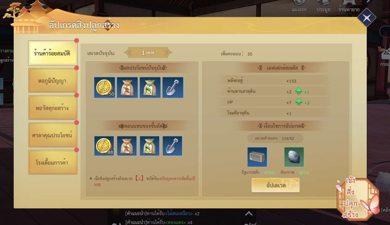 • ผู้เล่นอัปเลเวล 【หอวัสดุก่อสร้าง】 และ 【ร้านค้าปลูกสมบัติ】 จะได้รับรางวัลสุ่ม ในเวลา 12:00 น. และ 20:00 น. ของทุกวัน สะสมได้สูงสุด 3 ครั้ง