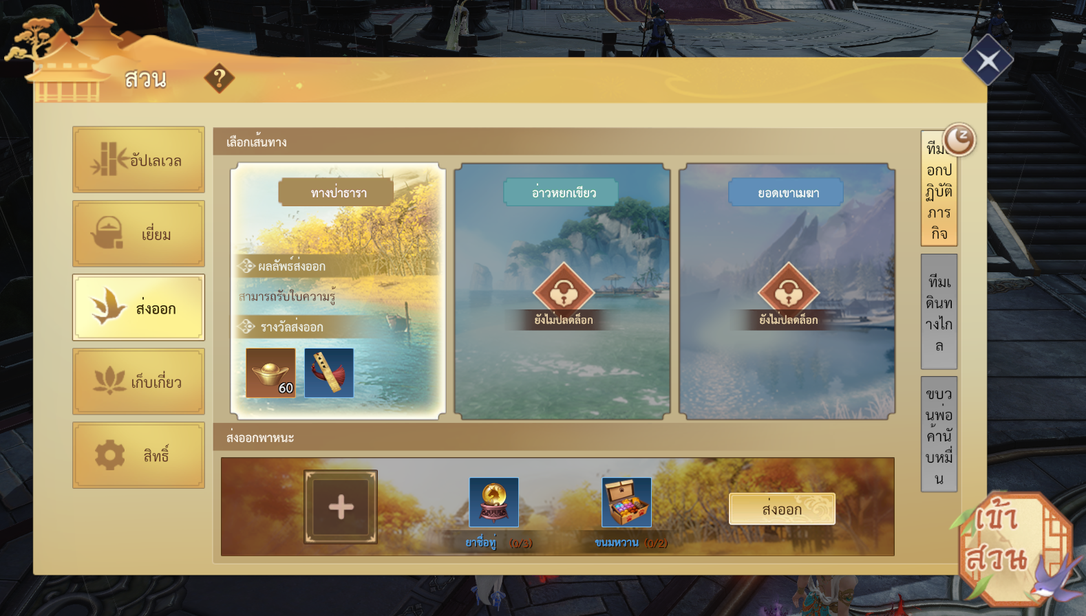 • เลเวล 1: ปลดล็อกการส่ง ทีมออกปฏิบัติภารกิจ และเพิ่มเส้นทาง ทางป่าธารา